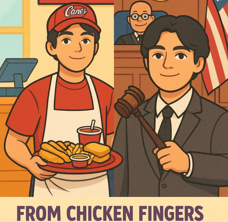 What makes this experience especially meaningful is how it parallels my role as a captain in mock trial and my pursuit of a legal career. Cane’s has sharpened many of the same skills I rely on in the courtroom. I’ve learned to stay composed under pressure, think quickly when situations escalate, and communicate clearly with teammates. Leading a crew through a busy rush requires organization, confidence, and the ability to inspire others while remaining calm—qualities that directly translate to leading a mock trial team through a complex case. My leadership, communication, and adaptability have all grown stronger because of this job, and those traits continue to fuel my success in both mock trial competitions and my broader legal journey.